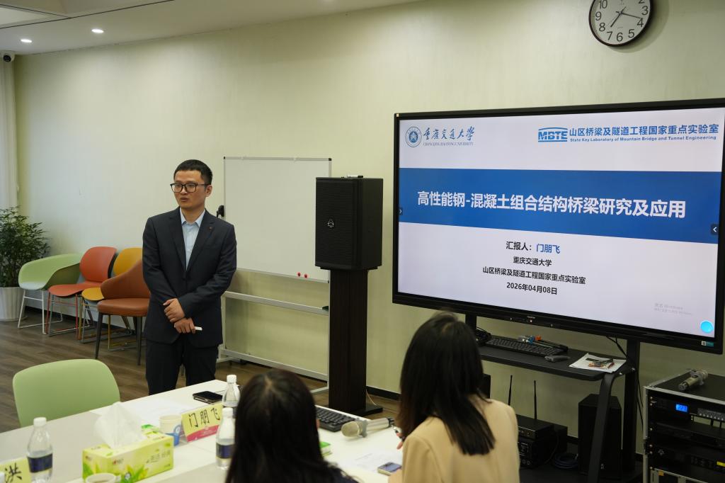 2026年4月8日上午,重庆交通大学第四十一期青年学者学术前沿交流会在南岸校区明德楼七楼2919会议室举行。校党委书记宫辉,校纪委书记李晓珂,党委常委、组织部部长任海涛,以及人事处、研究生院、教务处、科技处等相关职能部门负责人出席会议。本期学术交流会特邀旅游与传媒学院讲师杨晶晶、山区桥梁及隧道工程国家重点实验室讲师门朋飞作专题报告,围绕“旅游数智管理、文旅消费”以及“高性能钢-混凝土组合结构桥梁研究”展开探讨。
