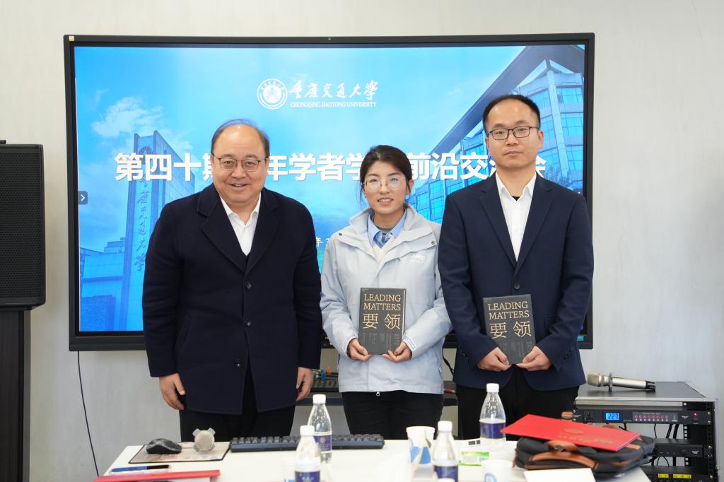 2026年3月25日上午,重庆交通大学第四十期青年学者学术前沿交流会在南岸校区明德楼七楼2919会议室顺举行。校党委书记宫辉,校长,党委副书记张铭,党委常委、副校长周建庭、罗均,以及人事处、研究生院、教务处、科技处等相关职能部门负责人出席会议。本期交流会特邀材料科学与工程学院副教授樊冬、智慧城市学院讲师丁友丽作专题报告,全校各学院青年教师代表参会。