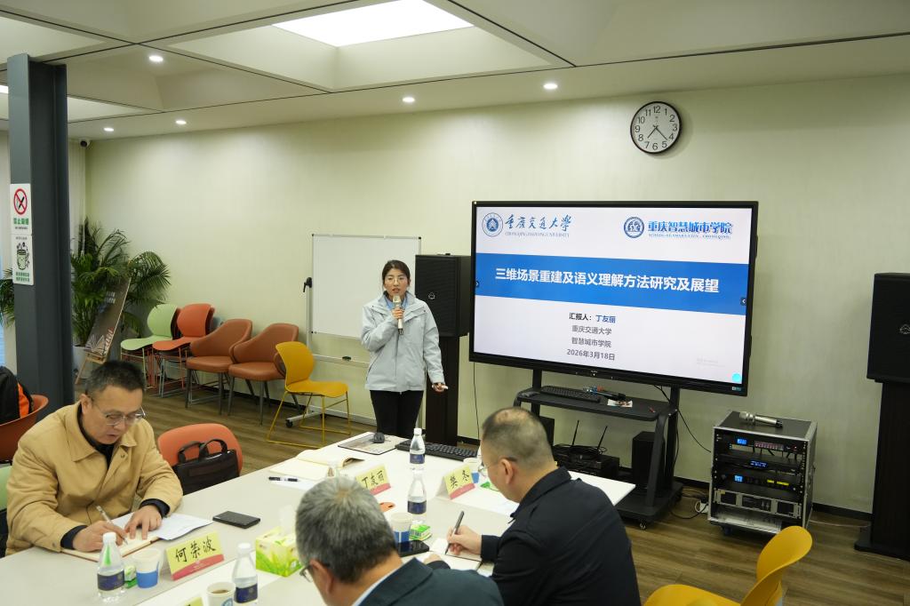 会上,智慧城市学院青年教师丁友丽聚焦三维场景重建与语义理解领域作报告,详细介绍了该领域的技术难点与研究进展。她提出分层式重建、二三维语义传递、多视几何引导分割等多项创新算法,有效提升了三维建模的精度与效率。研究中,她积极推动学科交叉融合,重点探索桥梁精细化重建与点云轮廓提取技术。未来,她将聚焦三维智能解译通用算法研发,依托多模态大模型实现多源信息深度融合,通过知识蒸馏完成算法轻量化部署;同时推动技术垂直应用于低空空域数字底座构建与桥梁数智化健康监测,加速交叉学科成果转化落地。