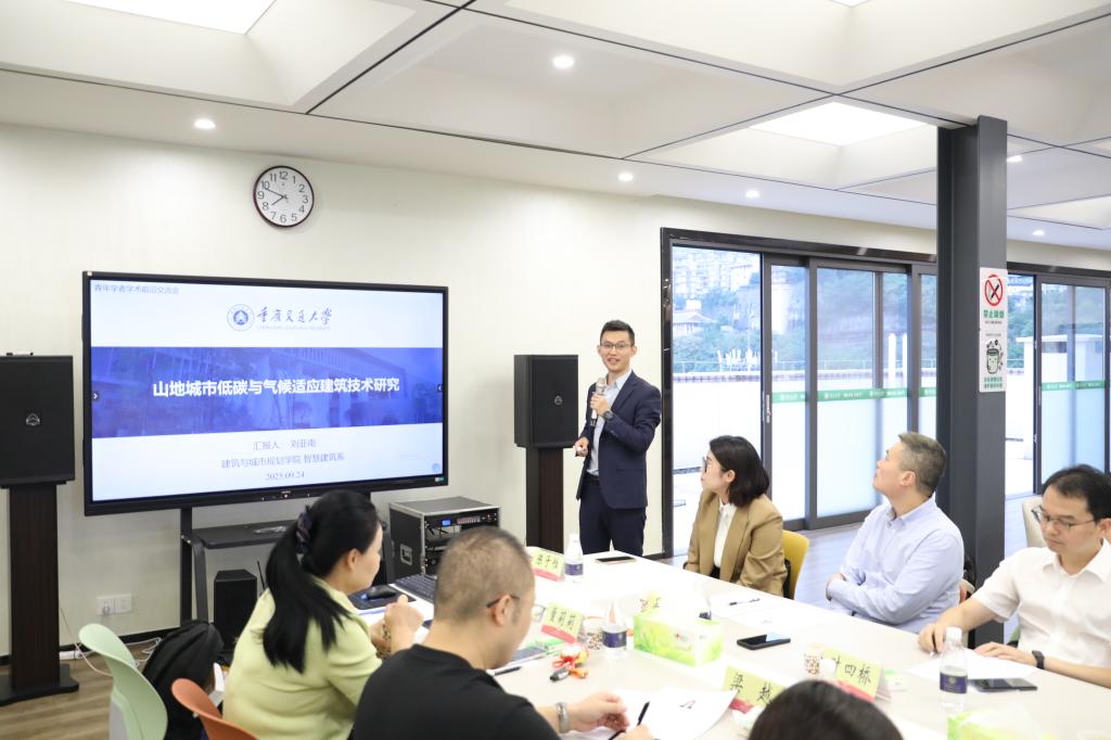 2025年9月24日清晨,重庆交通大学第三十三期青年学者学术前沿交流会在南岸校区2919会议室举行。校党委书记宫辉,党委常委、副校长董绍江,党委常委、副校长罗均,以及相关职能部门负责人出席会议。河海学院青年学者陈子惟、建筑与城市规划学院青年学者刘亚南分别围绕雨水径流污染控制与山地城市低碳建筑技术作了专题报告。