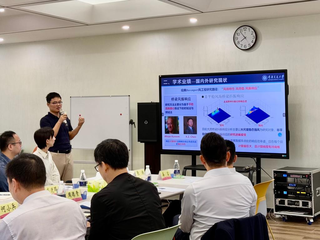 山区桥梁及隧道工程国家重点实验室青年学者姜言聚焦“山地复杂风场下柔性结构风载特性及风振响应”,系统介绍了山区大跨桥梁抗风研究进展。他首创物理-数据联合平均风预测模型,提出脉动风演化谱与时变相干函数,实现山区风场高保真随机模拟;构建三维气动导纳闭合解,揭示紊流三维效应,建立瞬态风荷载数学模型;开创非平稳抖振响应精细化分析框架,提出非高斯极值评估方法,精度提升超20%。姜言主持国家级、省部级项目13项,授权发明专利19项,获重庆市自然科学二等奖。未来,他将建成国内首个山区主/被动一体化风洞实验室,力争产出高水平论文10篇以上、发明专利10项,培养研究生15名,冲击青年长江学者,为“桥都”抗风安全提供硬核支撑。