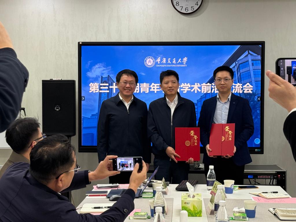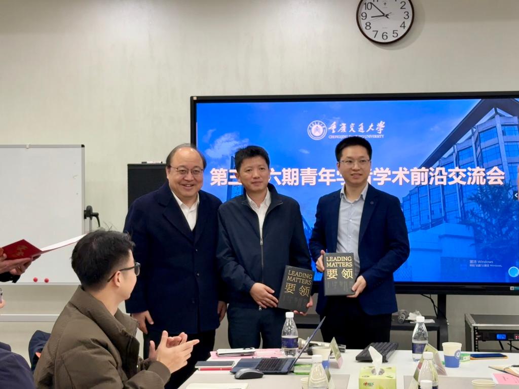 会后,罗小松、宫辉、罗均向两位青年学者颁发证书,并赠送书籍《要领》及重庆交通大学文创书包,感谢他们为本次交流会带来的精彩报告与前沿分享。