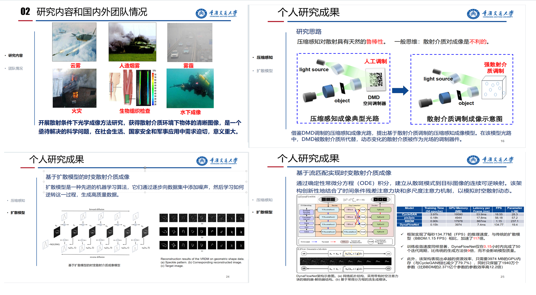 主要成果:主持国家自然科学基金青年项目、重庆市教委科学技术研究项目。近5年,以第一作者/通讯作者发表发表SCI/EI论文4篇,授权国内发明专利3项。获得2023年重庆市本科高校微课比赛三等奖、2023年校级青年教师教学竞赛三等奖、2023年校级教师教学创新大赛二等奖。指导学生获得二十七届中国机器人及人工智能大赛全国总决赛一等奖、十五届蓝桥杯全国软件和信息技术大赛二等奖、2023年中国大学生计算机设计大赛三等奖。